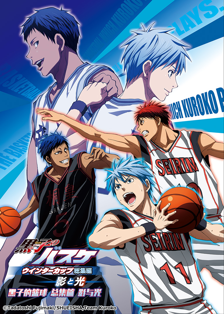 《黑子的篮球》是藤卷忠俊创作的一部有关篮球的作品漫画作品,作品于2008年12月开始连载。在奇迹的世代之中被称之为幻之第六人的黑子哲也与从美国归来的火神大我一起带领球队挑战奇迹的世代。《黑子的篮球 总集篇》共分为3部,第一部影与光,9月在日本院线公映。